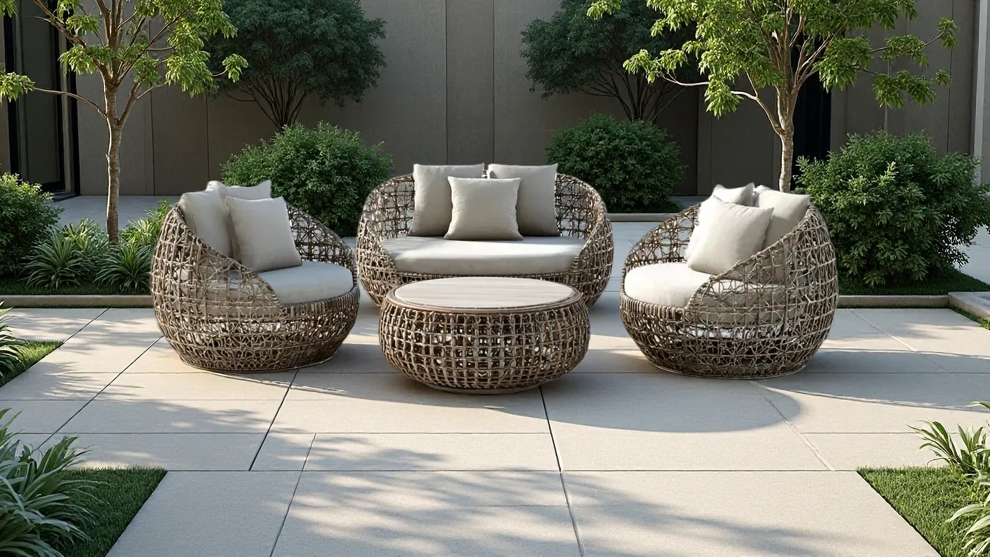 Garden Furniture Set two loveseats with round coffee table 78x78x35 cm - natural/beige - outdoor conversation set