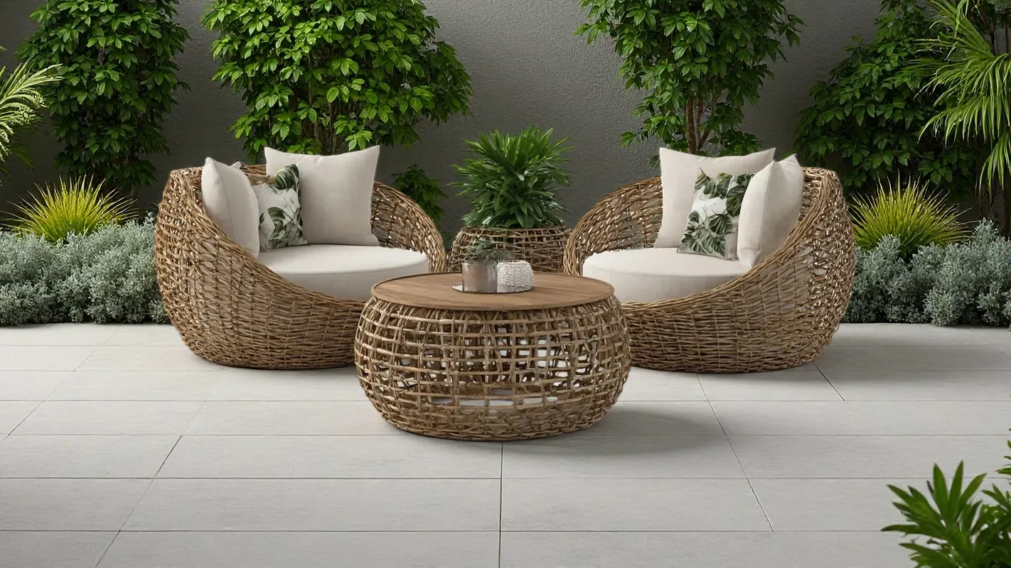 Garden Furniture Set rattan loveseat and two armchairs with round coffee table 80x80x38 cm - natural/beige - outdoor lounge set